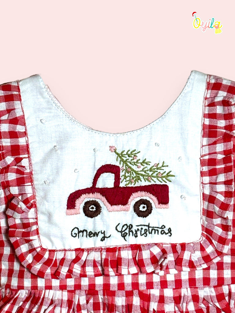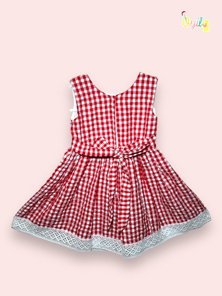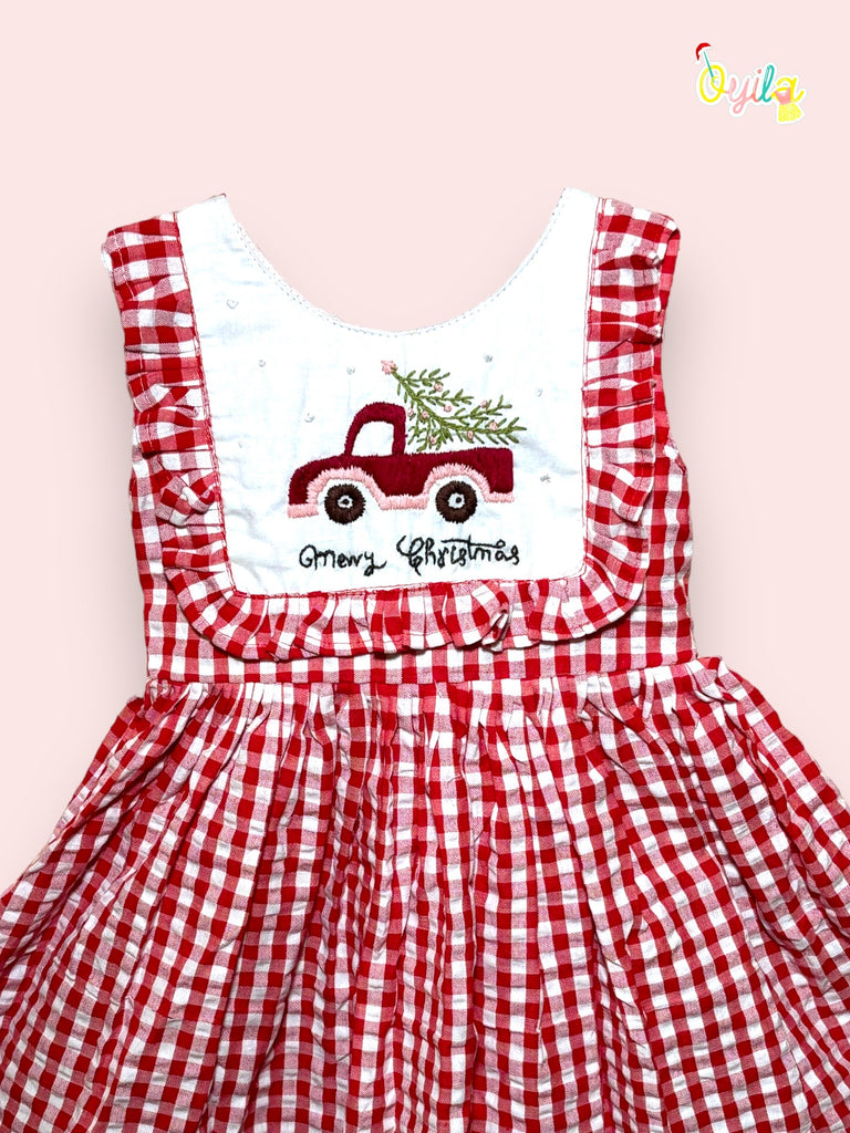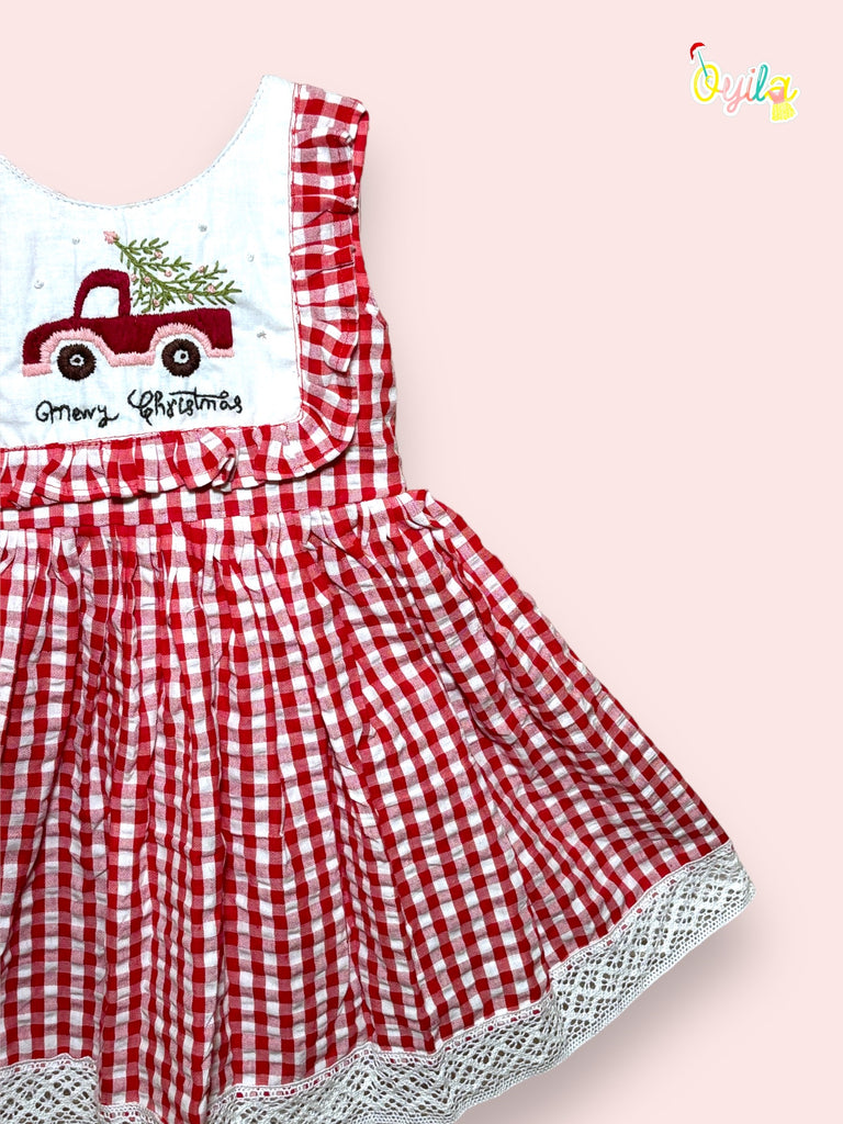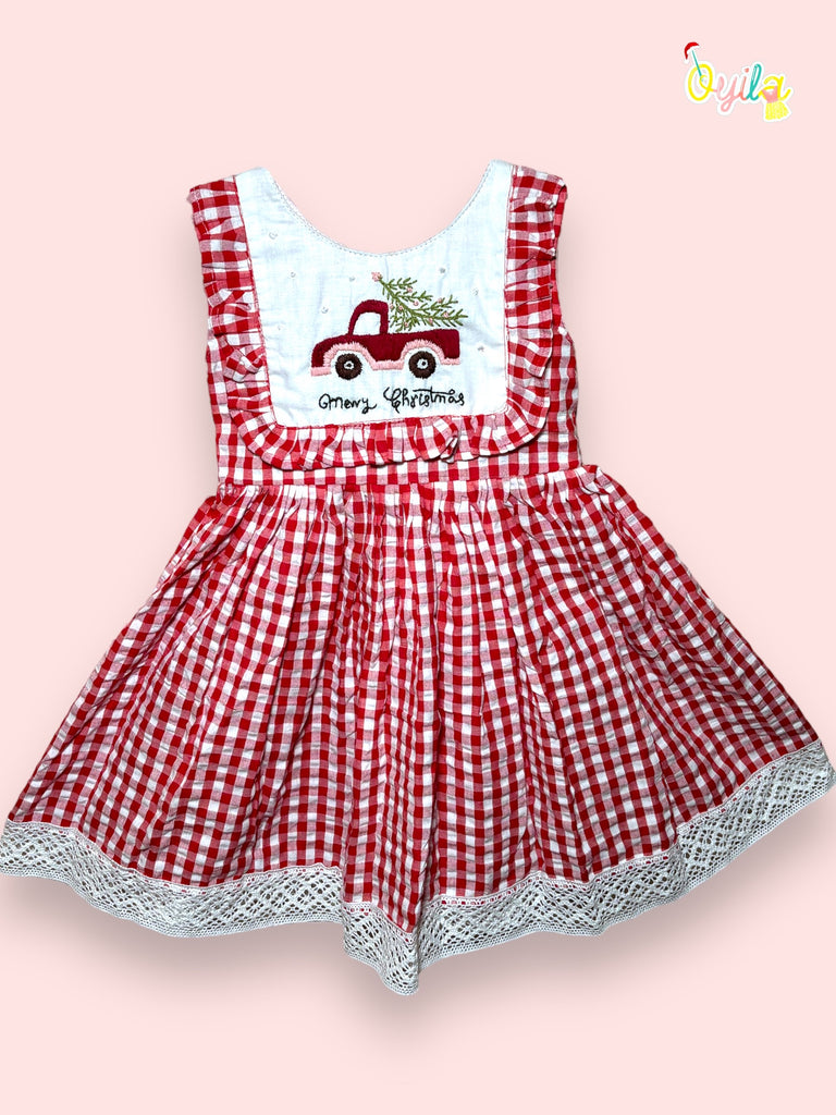 A red dress with a white gingham pattern, providing a cheerful and traditional holiday look.