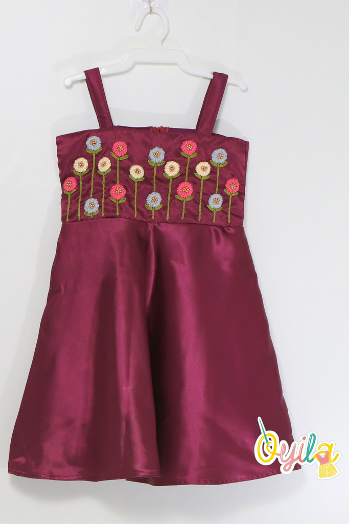 The full skirt falls smoothly from the natural waist, offering a simple yet elegant contrast to the detailed floral embroidery. A young girl would feel like she's in her own fairy tale garden.