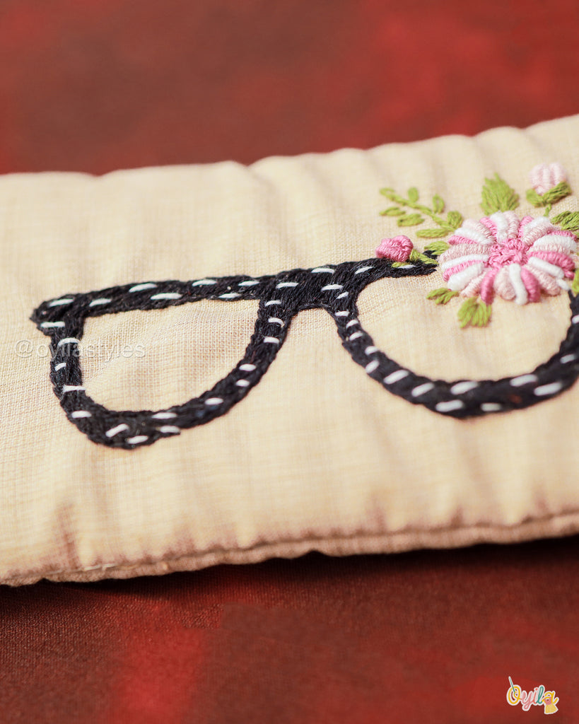 Personal and elegant, this handcrafted pouch with delicate floral accents serves as a perfect storage option for your everyday essentials such as spectacles.Finished with a pearl button closure, this pouch is ideal for gifting or for adding a personalized accessory to your collection.