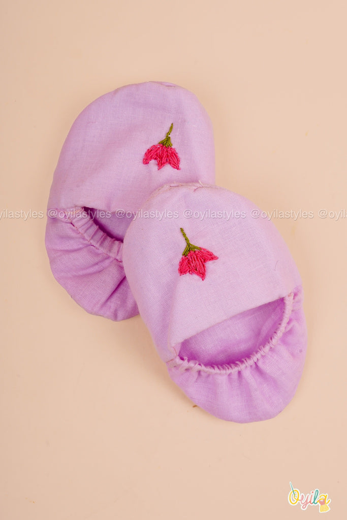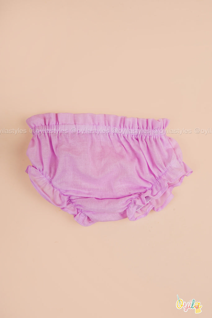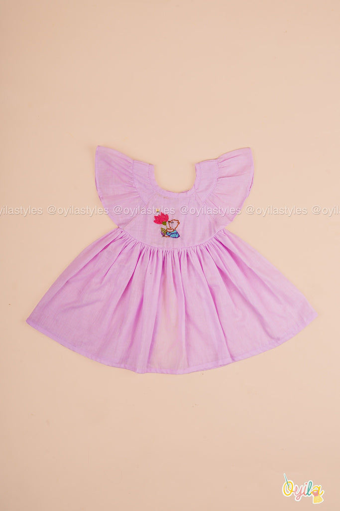 Say hello to Anaya – a tender lavender dress set with a teddy full of charm. This soft cotton frock features delicate hand embroidery of a teddy holding a flower, puff sleeves, and a gathered waist. Paired with a matching bloomer, bow headband, and booties, it’s the perfect choice for newborn gifting or special first moments.