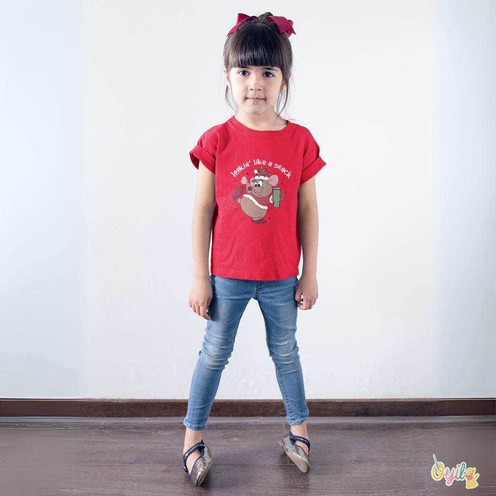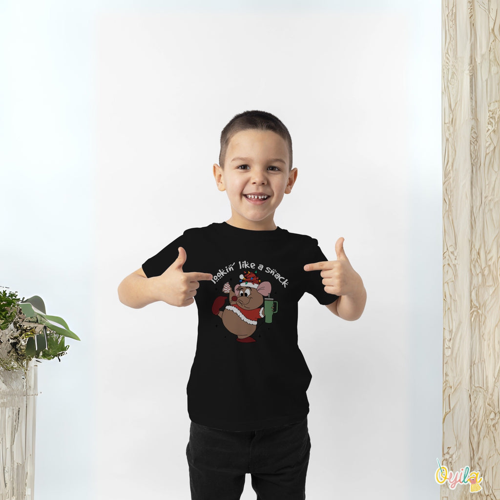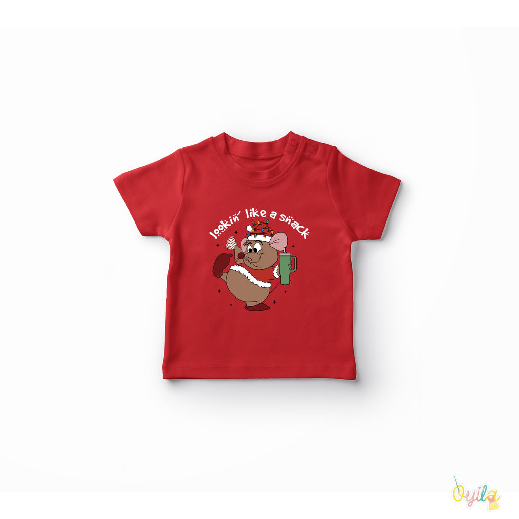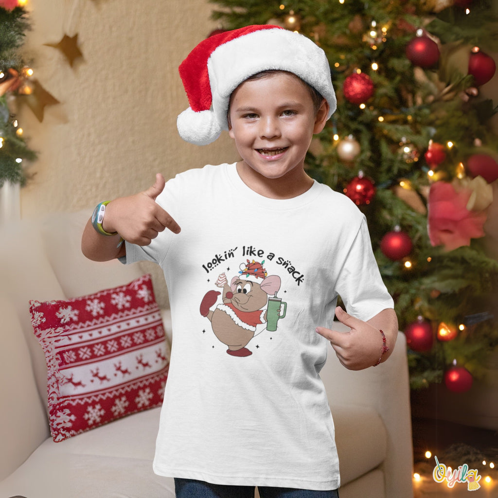Add some festive fun to your little one's wardrobe with our adorable holiday mouse t-shirt! This charming design features a jolly mouse dressed in Christmas attire, holding a festive drink and sporting a cookie-topped hat.