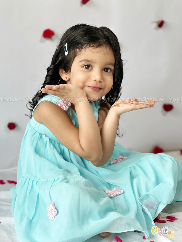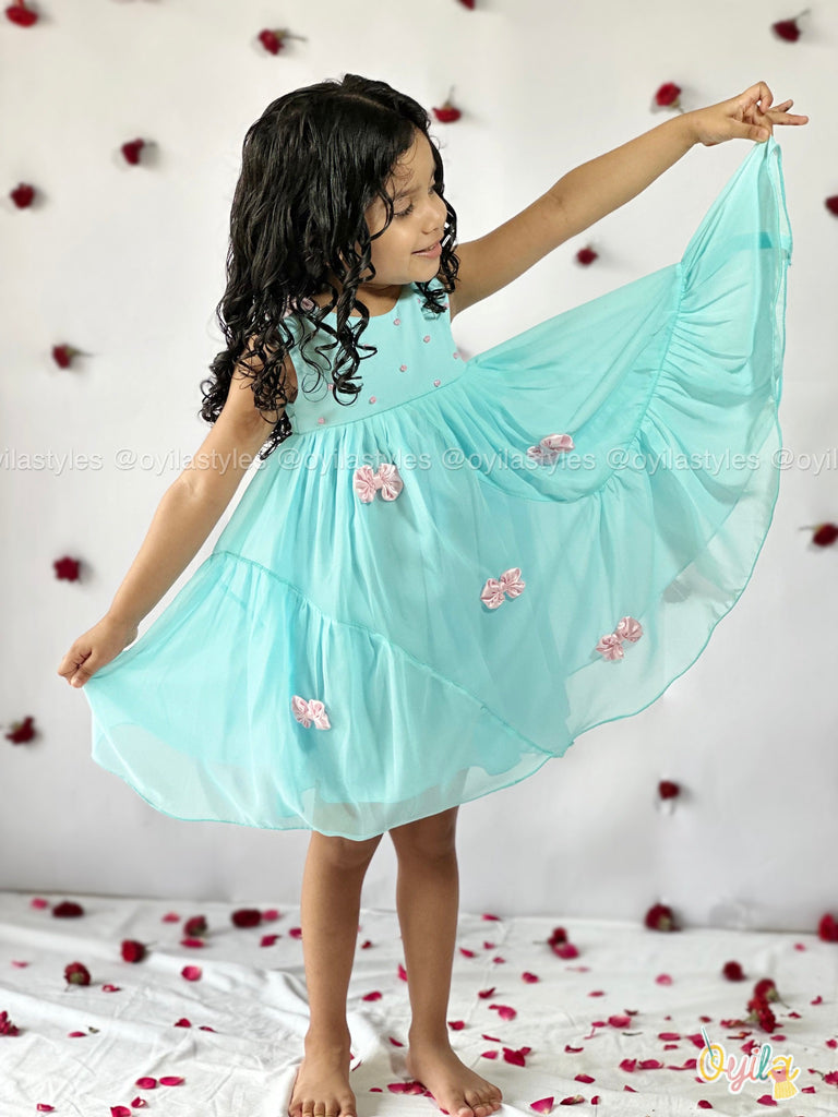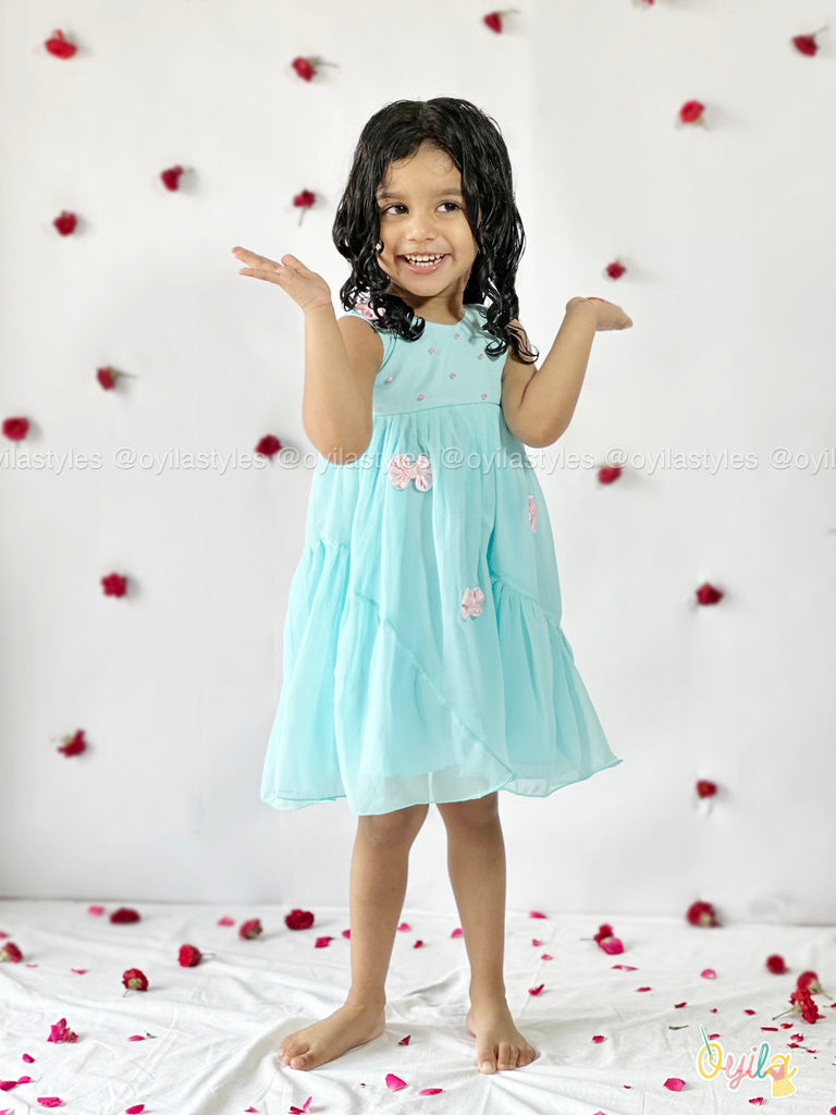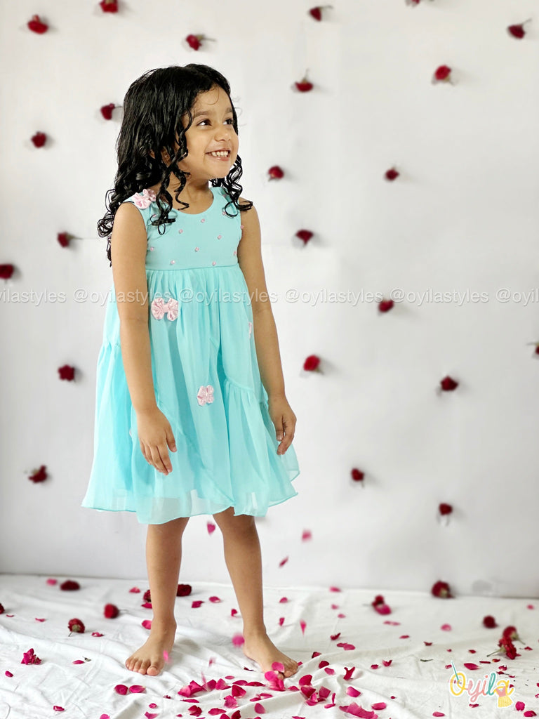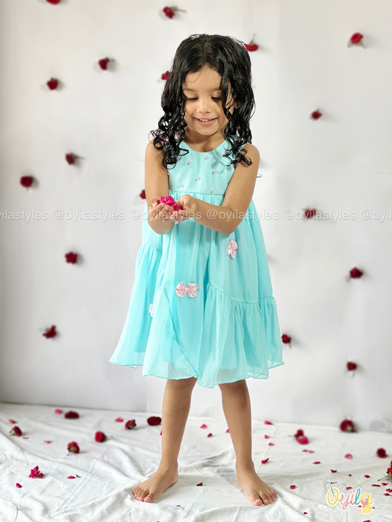 Skye is where simplicity meets sparkle. Crafted in a refreshing aqua blue, this sleeveless dress is perfect for those sunny spring days and carefree twirls. Embellished with soft pink bows and delicate pearls, it captures the joyful spirit of Easter and beyond. Lightweight and lined for comfort, Skye is an easy pick for playdates, parties, or just dancing around the house.
