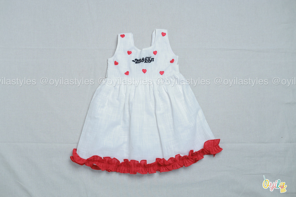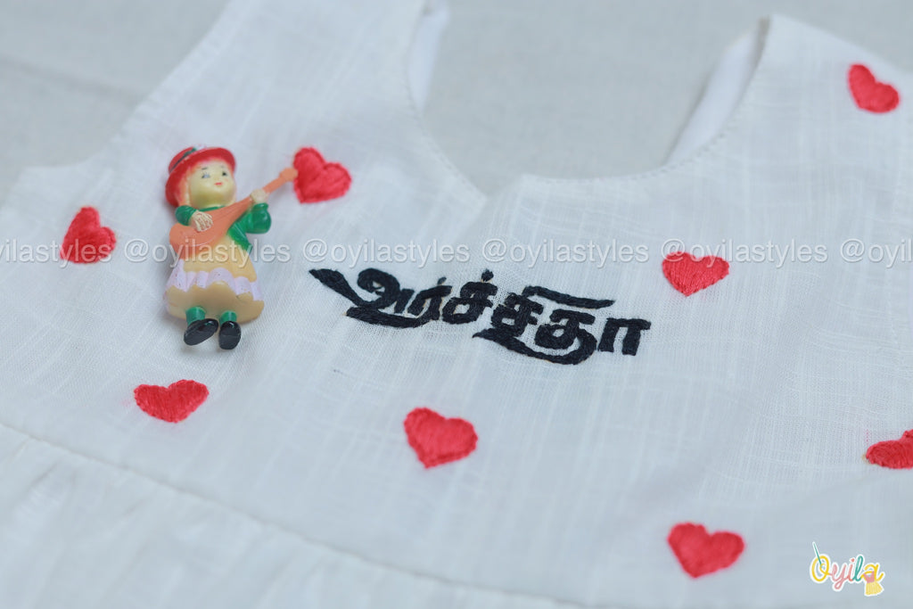 Design Red heart embroidery with personalised Tamil name